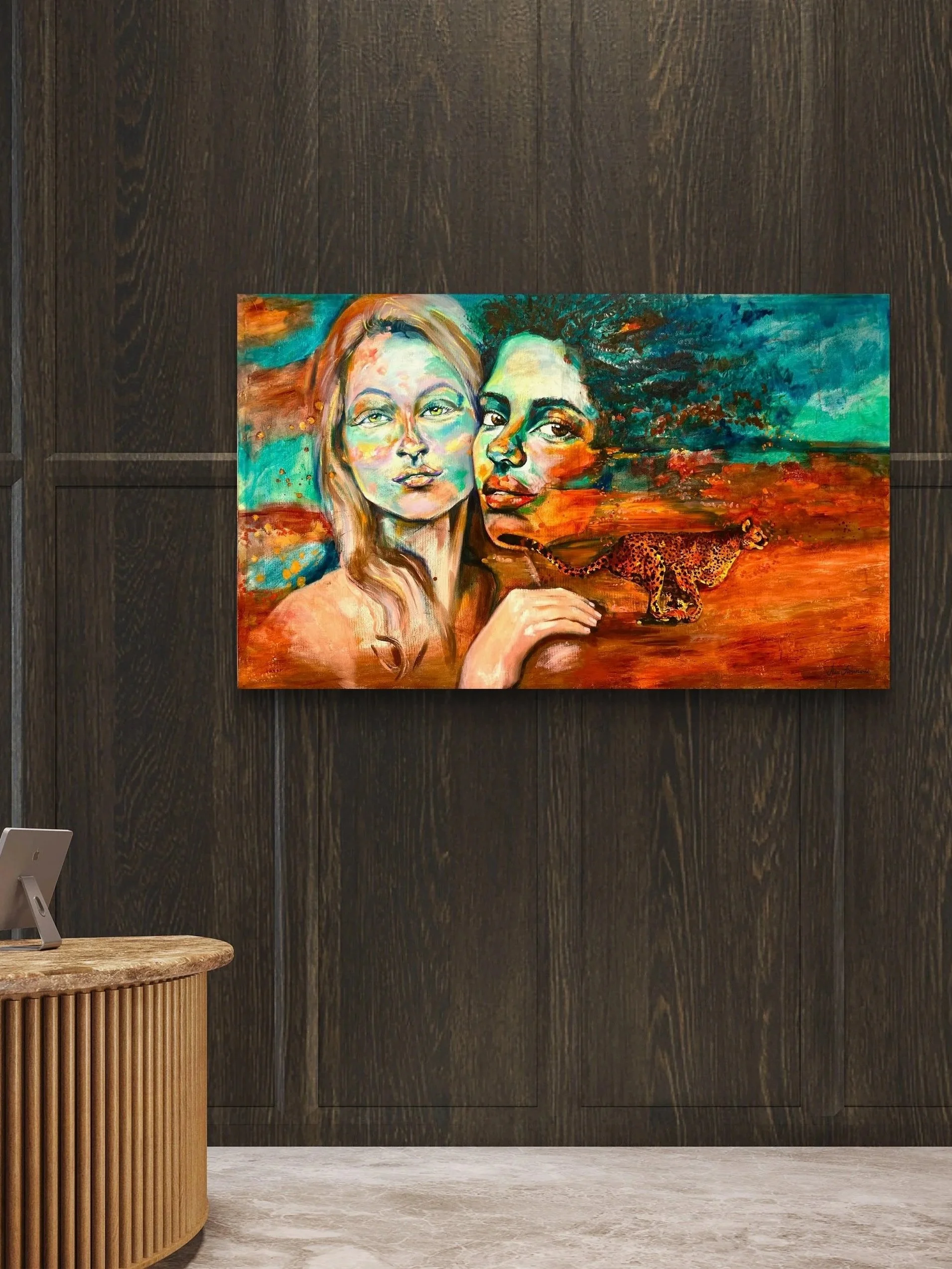 The painting is varnished with a satin varnish that is not too glossy and provides long-lasting protection against dust and fading, ensuring many years of durability and visual enjoyment.